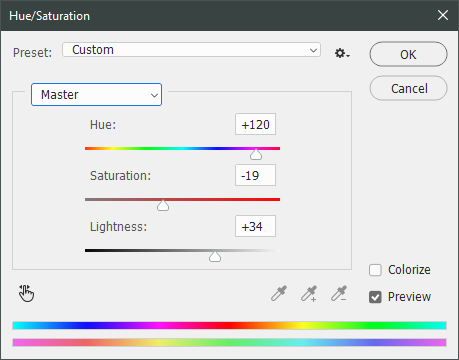 lookslikerain. However, purple is all wrong for the color scheme I had in mind, so I went to Image > Adjustments > Hue/Saturation... to change it up to better suit my needs. Never be afraid to mess around with textures!